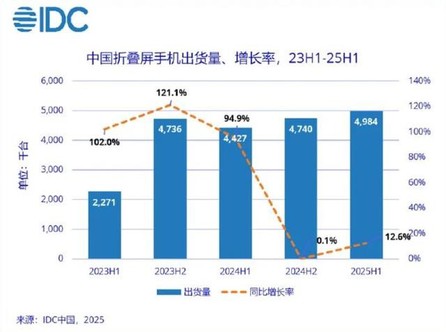 2025年上半年中国折叠屏手机总出货量498万台,同比增长12.6%。华为一家就吃了374万台,占比高达75%!